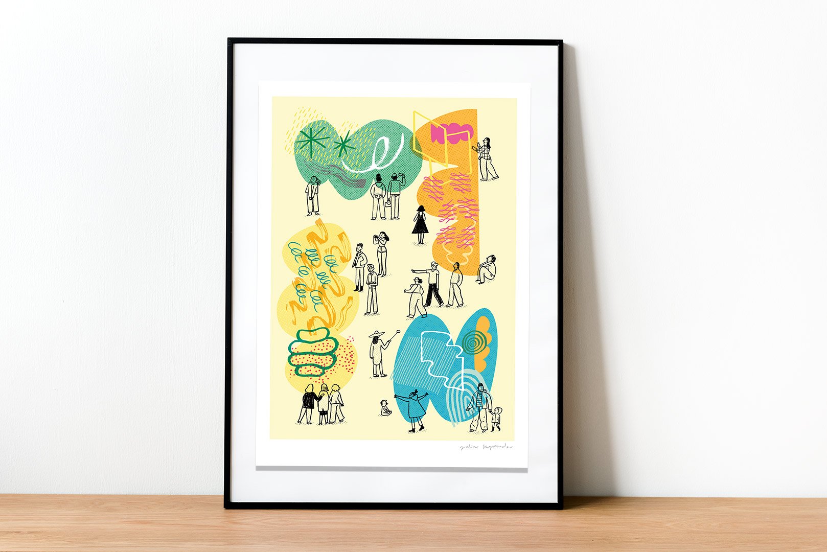 To keep the artwork safe during shipping, prints are wrapped in a protective sleeve and sent flat in a hard cardboard envelope (or in a roll for prints larger than A3 size).