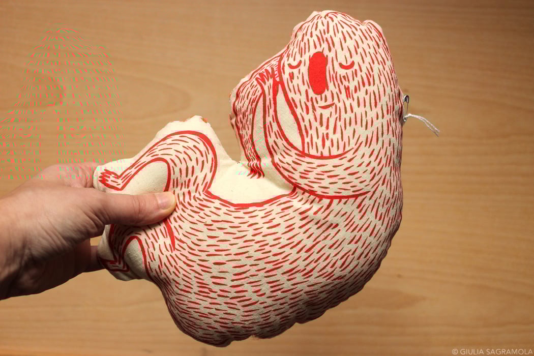 This soft toy it's screen-printed in Barcelona and sewn by me.