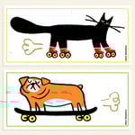 This skater dog will perfectly sticks on a notebook, water bottle, helmet, laptop, etc. It can be used with its frame or as two detachable stickers: the skater dog and the speed cloud.